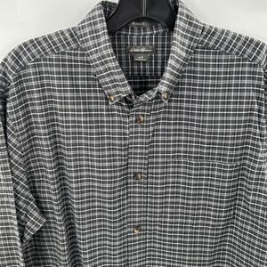 Eddie Bauer Men's Gray White Plaid Long Sleeve Relaxed Fit Shirt Size Small