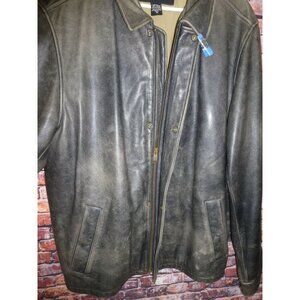 Eddie Bauer Mens Grey Distressed Leather Jacket Tall XL Black Genuine Leather &