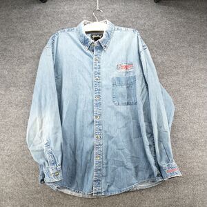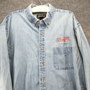 Eddie Bauer Men's Isuzu Denim Button-Down Shirt Blue XL Long Sleeve Logo