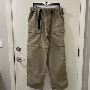 Eddie Bauer Mens Khaki Nylon Belted Convertible Sport Hiking Outdoor Pants Sz 34