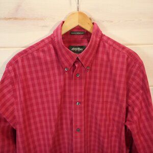 Eddie Bauer Men's L Button-up Shirt Wrinkle-Resistant Red Plaid 100% Cotton