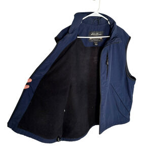 Eddie Bauer Full Zip Outfitter Vest 100% Nylon Fleece Lined Pockets Blue