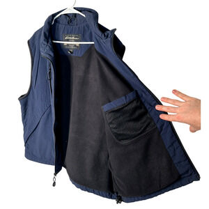Eddie Bauer Mens L Full Zip Outfitter Hiking Vest 100% Nylon Fleece Lined Blue