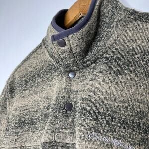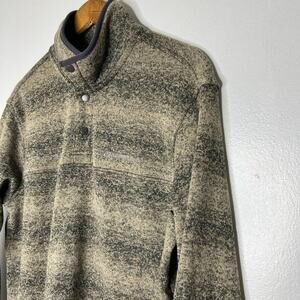 Eddie Bauer Men's L Green Striped Snap Neck Fleece Pullover