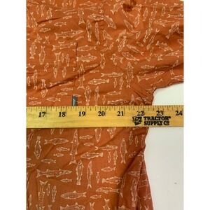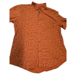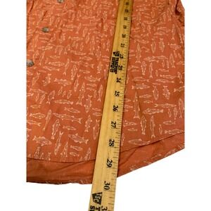 Eddie Bauer Mens L Orange Fish Print Button Down Short Sleeve Shirt