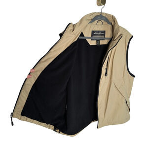 Eddie Bauer Men's L Outdoor Outfitter NYLON Vest Fleece Lined Full Zip Khaki Tan