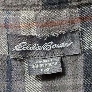 Eddie Bauer Men's Large Classic Fit Gray Plaid Flannel Button Up Shirt L/S