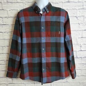 Eddie Bauer Mens Large Red Green Blue Slim Fit Plaid Flannel
