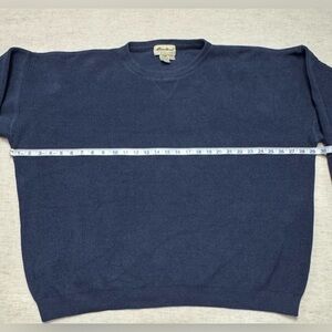 This Eddie Bauer men's sweater is a versatile choice for various occasions such as travel, casual outings, or workwear. The sweater features a tight-knit design in a classic blue color, with a crew neck and long sleeves for added warmth. Made from 100% cotton material, this fisherman-style pullover offers a comfortable fit in size 2XL for taller individuals. Ideal for cooler seasons like winter, fall, and spring, this sweater is machine washable and suitable for activities like walking, hunting, or hiking.