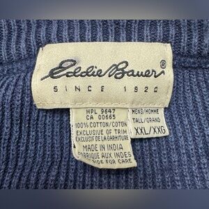 Eddie Bauer Men’s Long Sleeve Blue Knit Fisherman’s Sweater Tall XXL Pullover