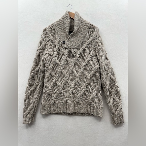 Eddie Bauer Men’s Medium Beige Fisherman Chunky Cable Knit Wool Blend Sweater