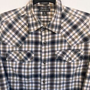 Eddie Bauer Men’s Plaid Snap Western Casual Long Sleeve