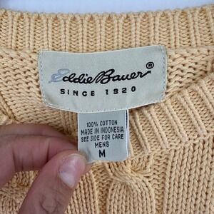 Eddie Bauer Mens Medium Yellow Cable Knit Crewneck Sweater 100% Cotton Chunky