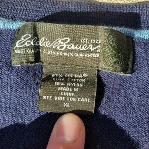 Eddie Bauer Men's Navy Blue V Neck Pima Cotton Sweater Size XL