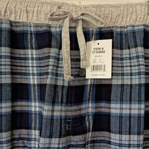 Eddie Bauer Mens Pajama Pants Flannel Sz XXL Plaid Blue & Gray 100% Cotton NWOT
