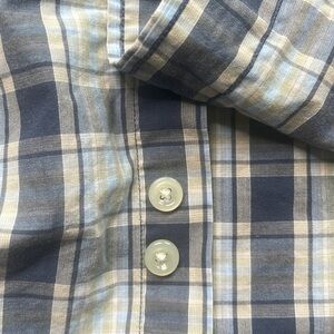Eddie Bauer Men’s Plaid Short Sleeved Button Down Collared Shirt, size Large Tall. In great used condition. Se epic tires for measurements and fabric content.