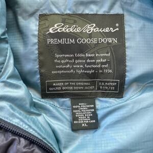 Eddie Bauer Men’s Premium Goose Down Puffer Vest Large Black Full Zip Mock Neck