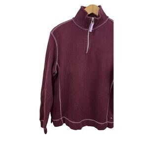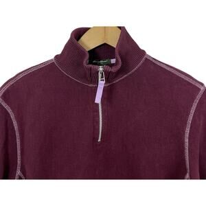 Eddie Bauer Men’s Pullover 1/4 Zip Mock Neck Burgundy Medium Cotton Sweatshirt