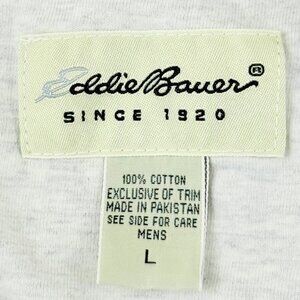 Eddie Bauer Men's Pullover Long Sleeve Grey Beige Henley Shirt Size L 100% Cotton