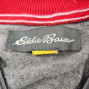 Eddie Bauer Mens Pullover Sweater Gray Solid Mock Neck 1/4 Zip Tight Knit Logo M