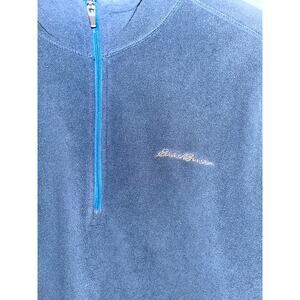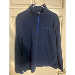 Soft and warm Eddie Bauer fleece pullover with a half-zip front and blue inner collar detail. Perfect for layering in cool weather. Gently used and in great condition.