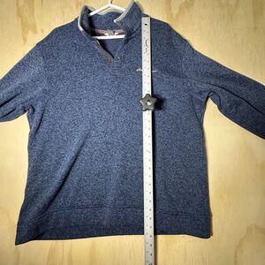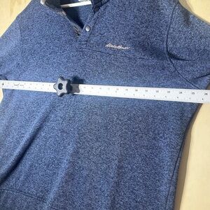 The Eddie Bauer Men's Radiator Fleece 1/4-Zip Pullover in XXL is a stylish and comfortable sweatshirt perfect for men who prefer a pullover style. Made with fleece fabric, this sweatshirt is ideal for colder weather and provides extra warmth. The 1/4 Zip feature adds a touch of versatility and allows for easy layering. The classic blue color makes it a wardrobe staple that can be easily paired with various bottoms for a casual yet trendy look.