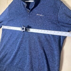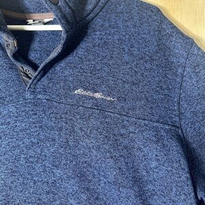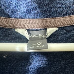 The Eddie Bauer Men's Radiator Fleece 1/4-Zip Pullover in XXL is a stylish and comfortable sweatshirt perfect for men who prefer a pullover style. Made with fleece fabric, this sweatshirt is ideal for colder weather and provides extra warmth. The 1/4 Zip feature adds a touch of versatility and allows for easy layering. The classic blue color makes it a wardrobe staple that can be easily paired with various bottoms for a casual yet trendy look.