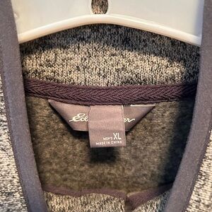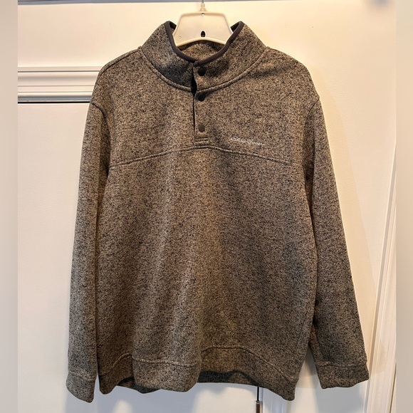 Eddie Bauer Mens Radiator Fleece Pullover Sweater Snap Front Gray XL Long Sleeve