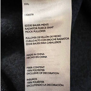 Eddie Bauer men's Radiator Fleece Snap Mock Pullover in blue with black trim, size XXL