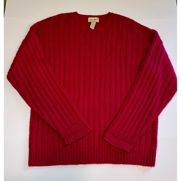 Eddie Bauer Mens Red Ribbed Wool Blend Vintage Preppy Sweater Large Tall L/G