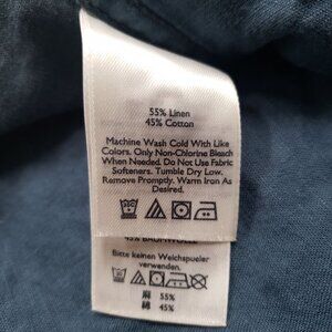 Crafted for comfort and breathability, this relaxed-fit shirt features a soft linen-cotton blend and abstract blue print, ideal for casual settings.