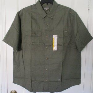 Eddie Bauer Mens S/S Casual Button Down Shirt. Size XXL. Armpit-to-armpit 27", Length 32.5". 100% Cotton in Khaki Green. New with Tags, suitable for gifting.