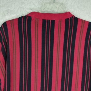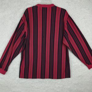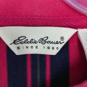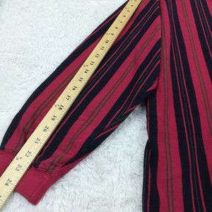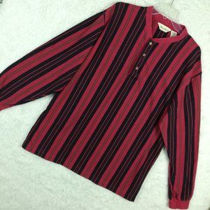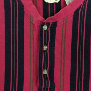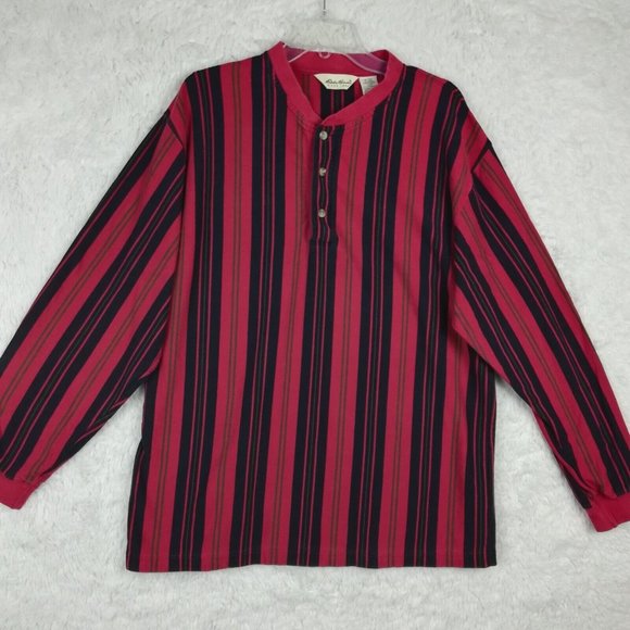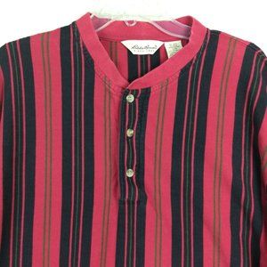 Eddie Bauer Mens Shirt Henley Long Sleeve Red Blue Stripes Pullover L