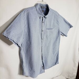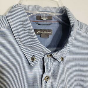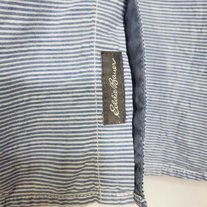 Eddie Bauer Mens Shirt Large Button Classic Fit Striped Blue Pocket Short Sleeve