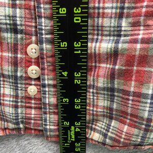 Eddie Bauer Mens Shirt Size LT Plaid Long Sleeve Button Down Linen Blend Red