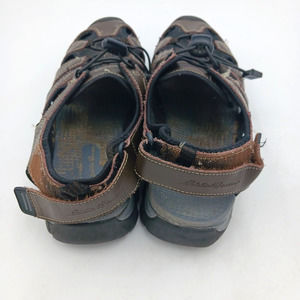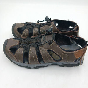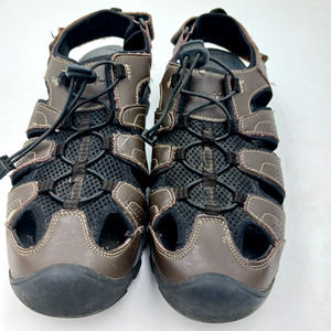 Eddie Bauer Men's Shoes 12M Bungee Lace Arvada Fisherman Water Sandals Brown scuffs to toes see photos for wear