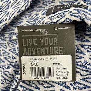 Eddie Bauer Mens Short Sleeve Button-Up Shirt White & Blue Size 3XL - New