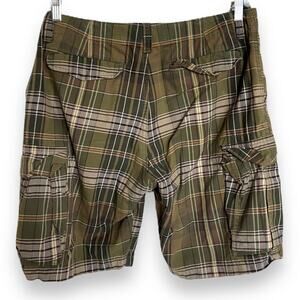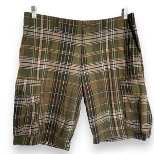 Eddie Bauer Mens Shorts Sz 34 Olive Green Tan Plaid Cargo Heavy Pockets