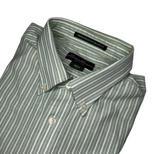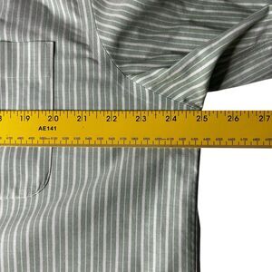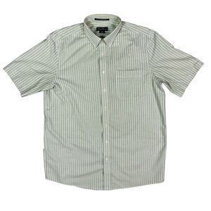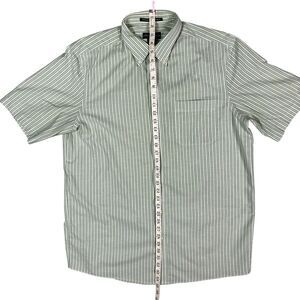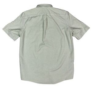 The Eddie Bauer Mens Size Large Relaxed Fit Wrinkle-Resistant Short Sleeve Shirt is a stylish and comfortable button-down shirt designed for men. Made of cotton with a woven fabric type, this shirt features a striped green and white pattern, a collared neckline, and a relaxed fit. The 25 pit to pit chest size and machine washable care make it both practical and fashionable. Perfect for casual wear, this shirt is a versatile addition to any man's wardrobe, offering a crisp and wrinkle-resistant look for everyday wear.