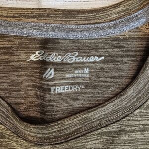 Eddie Bauer Men's Size Medium Freedry Motion Outdoor Active Tee Heathered brown and tan. Please see measurements in photos provided. In great Pre-owned condition. Cross posted. I ship out same or next day. Thanks for looking!
