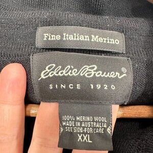 Eddie Bauer Men's Size XXL 100% Merino Wool Black Collared V Neck Sweater