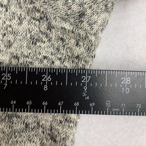 Men's gray fleece lined knit partial snap pullover sweater jacket. Partial snap closure, high neckline, long sleeves. Pullover styling, knit construction.