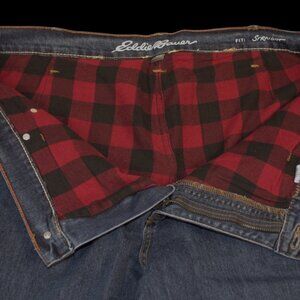 Eddie Bauer Mens Straight Leg Darkwash Jeans Flex Stretch Flannel Lined 40X30