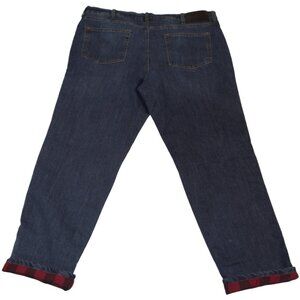 Washed once but NEVER worn dark wash, straight leg men's denim jeans. Flex with a bit of stretch, Cozy flannel lined inside great for colder weather!