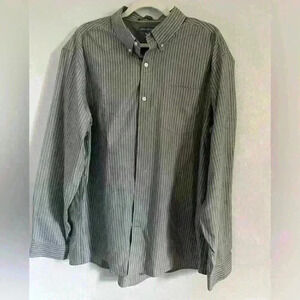 Great used condition! Wrinkle free. Relaxed fit. Grey & white striped