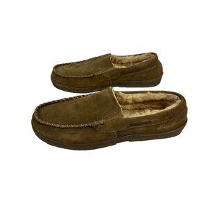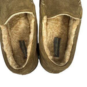 Eddie Bauer Mens Suede Moccasin Slippers XL (11-12) Faux Fur Lined Brown