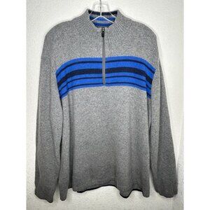 Eddie Bauer Mens Sweater Extra Large Quarter Zip Wool Gray Blue Stripe 1/4 Zip