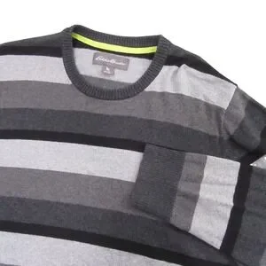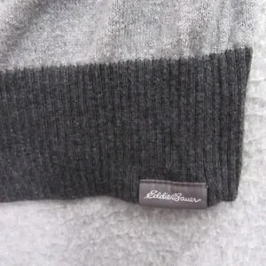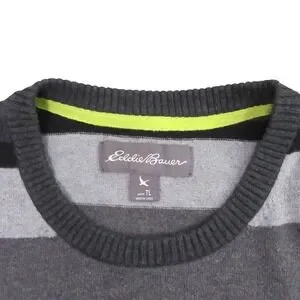 Eddie Bauer Mens Sweater TL Gray Striped Cotton Merino Wool Crewneck 15885