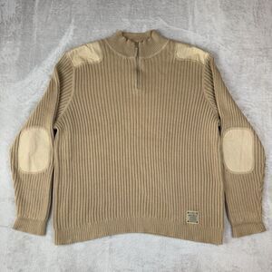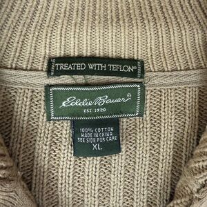 Eddie Bauer Mens Sweater XL Knit Tan Teflon Treated Elbow Patch English Country