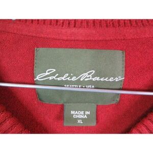 Eddie Bauer Mens Sweater XL Red Cashmere Blend V Neck Pullover Cabincore Cozy